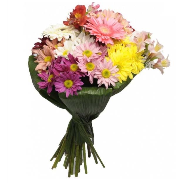 Bouquê de Flores do campo misto com lrios,astromérias,margaridas acabamento envouta de folhagem canoa, embaldo para presente no tradicional celofane transparênte e laço de cetim ou ráfia.